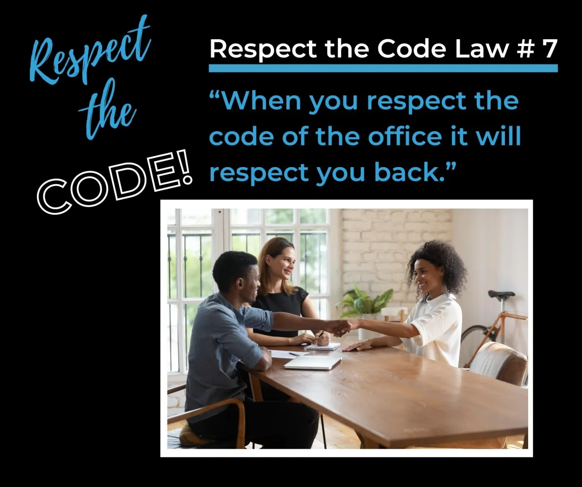 Respect The Code: Laws of Career Strategies & Codeswitching. This is the book that may quickly become your favorite companion in the workplace as well as your reference guide before you walk into an interview. Respect The Code! Laws for Career Strategies & Codeswitching, contains thoughtful writing exercises that help you discover and develop the best version of you in a corporate environment